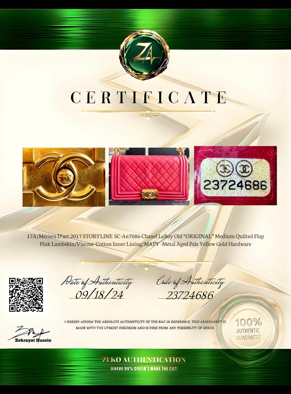 There is no authentication card but it has been authenticated by the best—authentications from Entrupy and Zeko will be included.