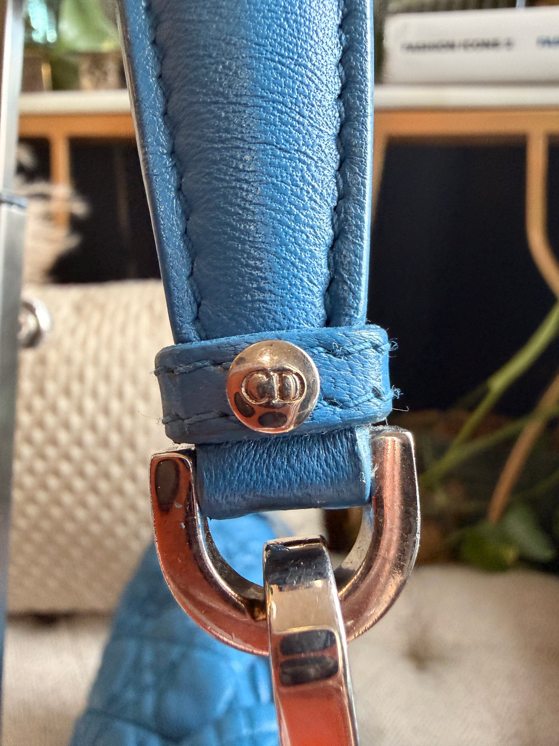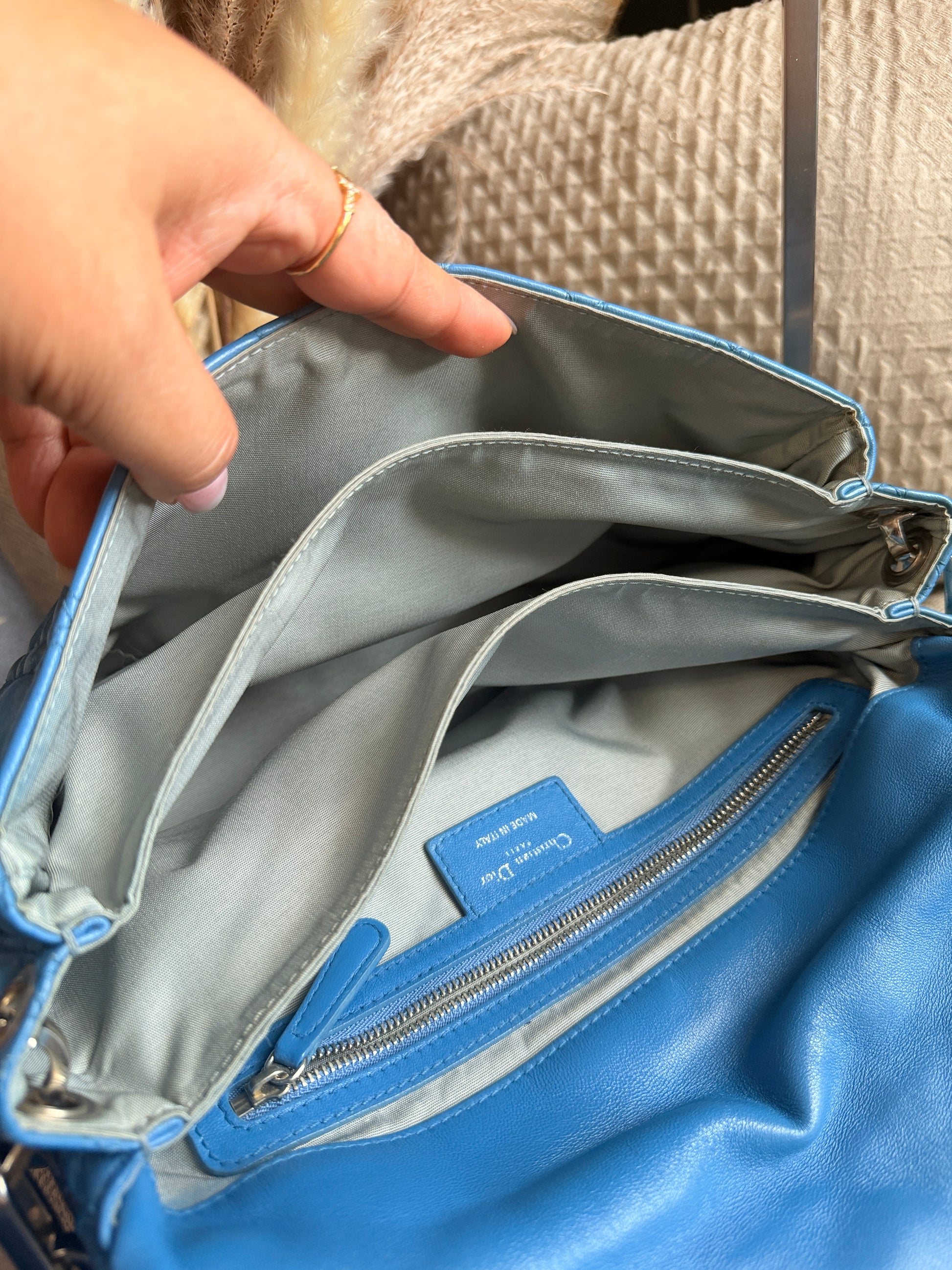 Closure/Opening: Flap top with Dior engraved pinch-lock closure