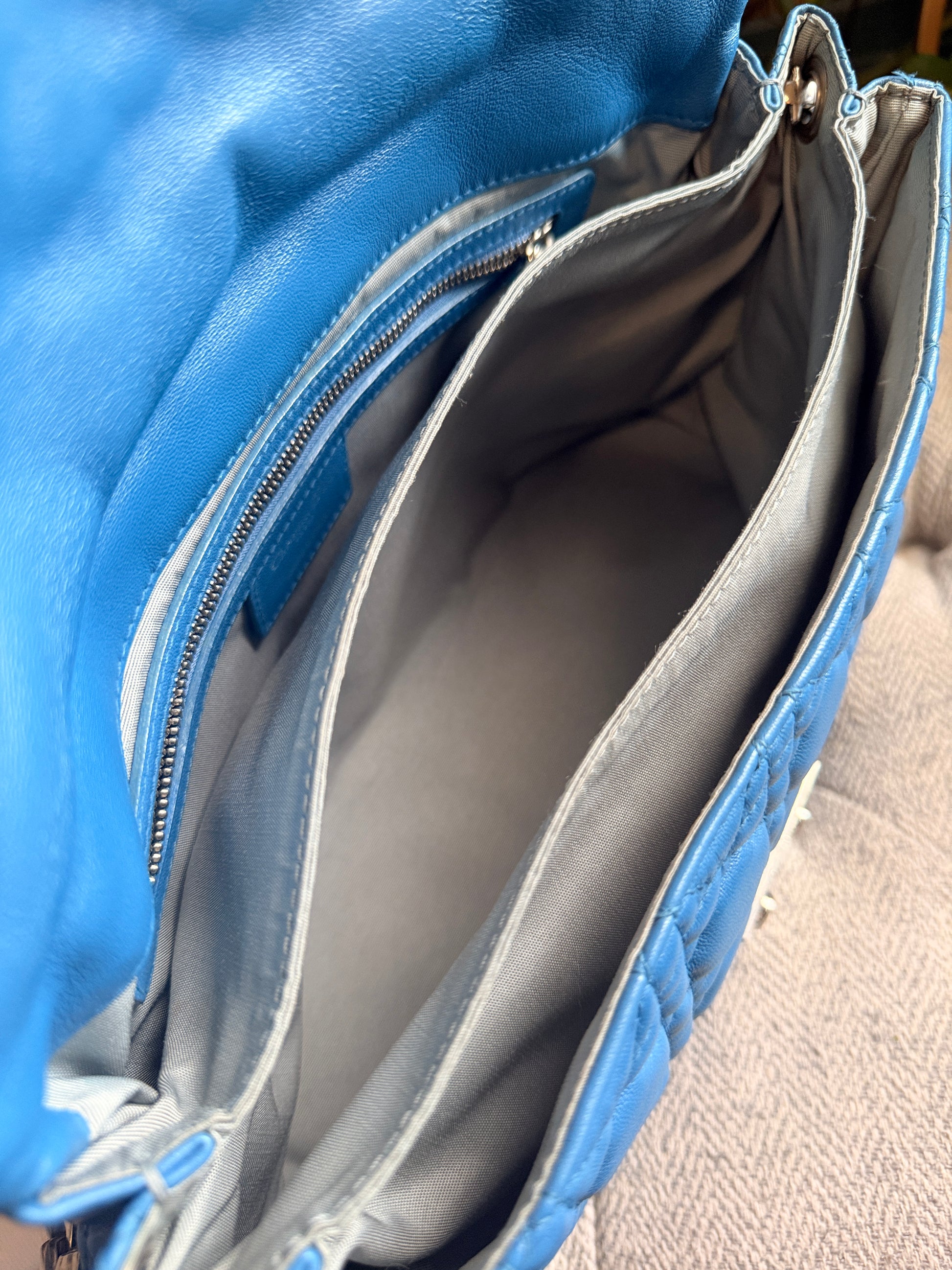Embodying an exquisite blend of timeless elegance and modern sophistication, the Christian Dior Cannage Quilted Lambskin Leather New Lock Flap Bag is an accessory that transcends mere functionality. Crafted from sumptuous quilted lambskin, its distinctive cannage pattern evokes a sense of artisanal heritage, while the refined chain link detailing adds a contemporary twist. The thoughtfully designed interior, featuring multiple compartments, ensures your essentials are always impeccably organized. With its silvertone hardware and luxurious finish, this coveted piece serves not only as a bag but as a statement of exquisite taste.