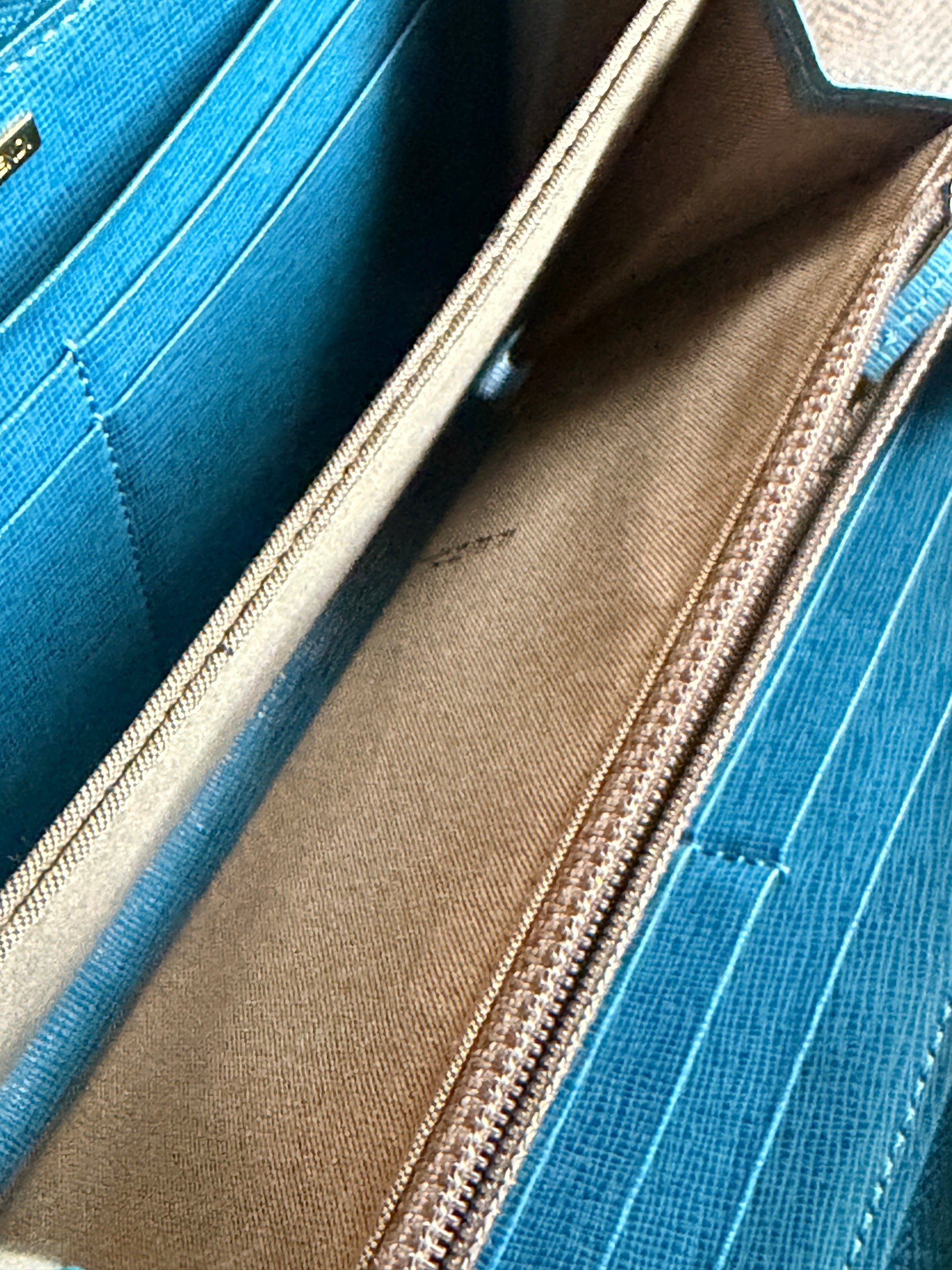 Such a cool happy colour on this zippy wallet🩵!