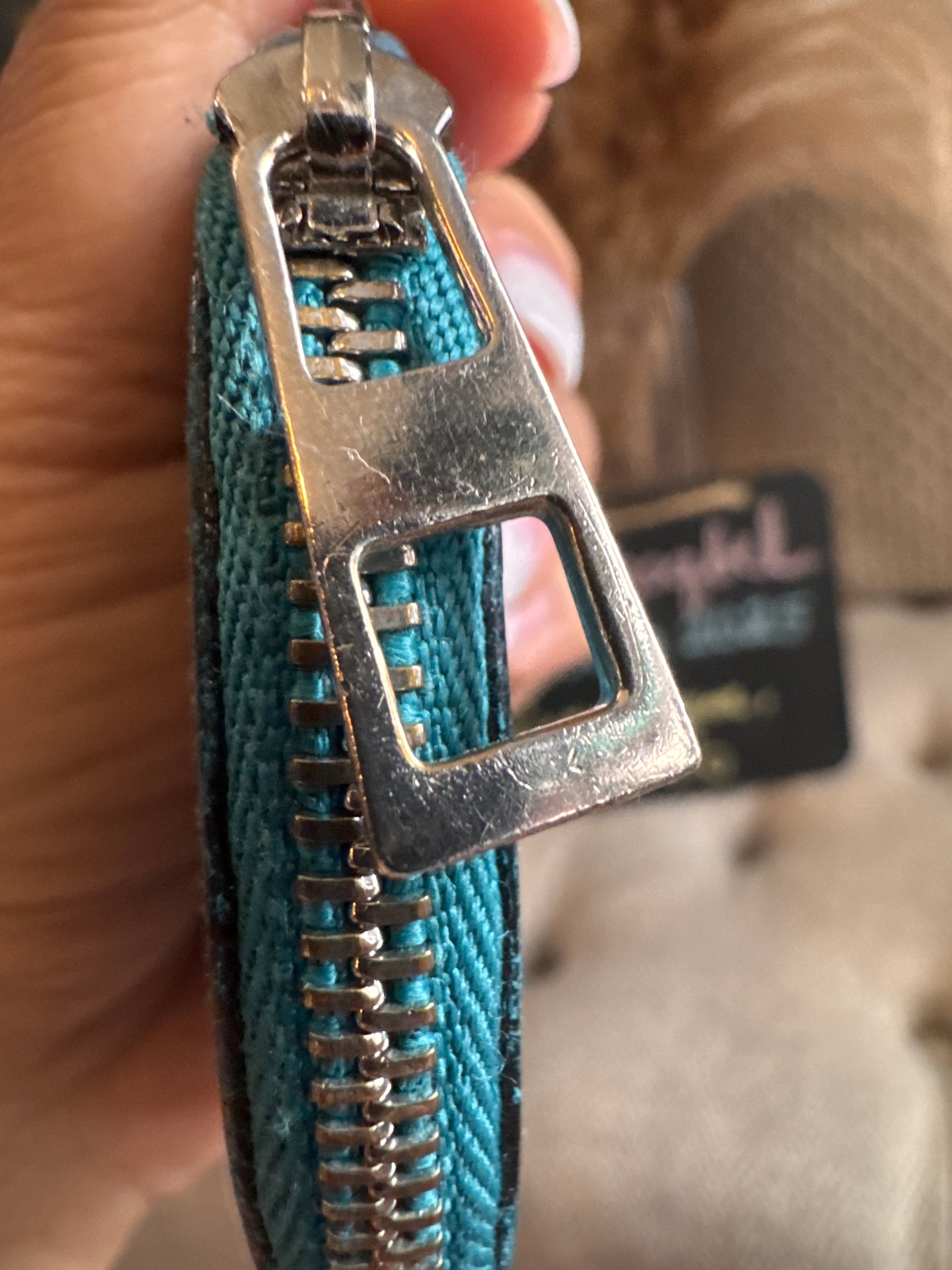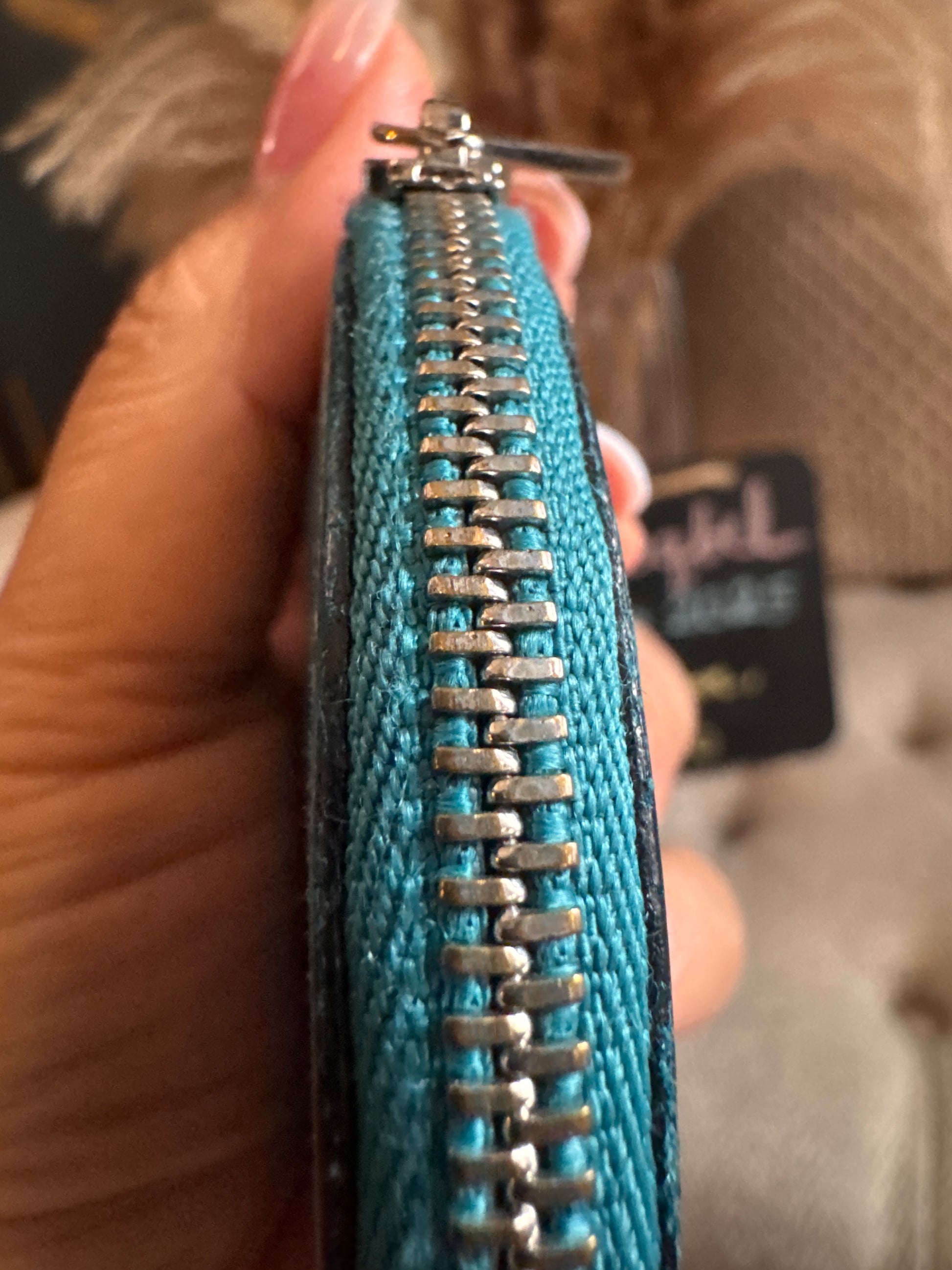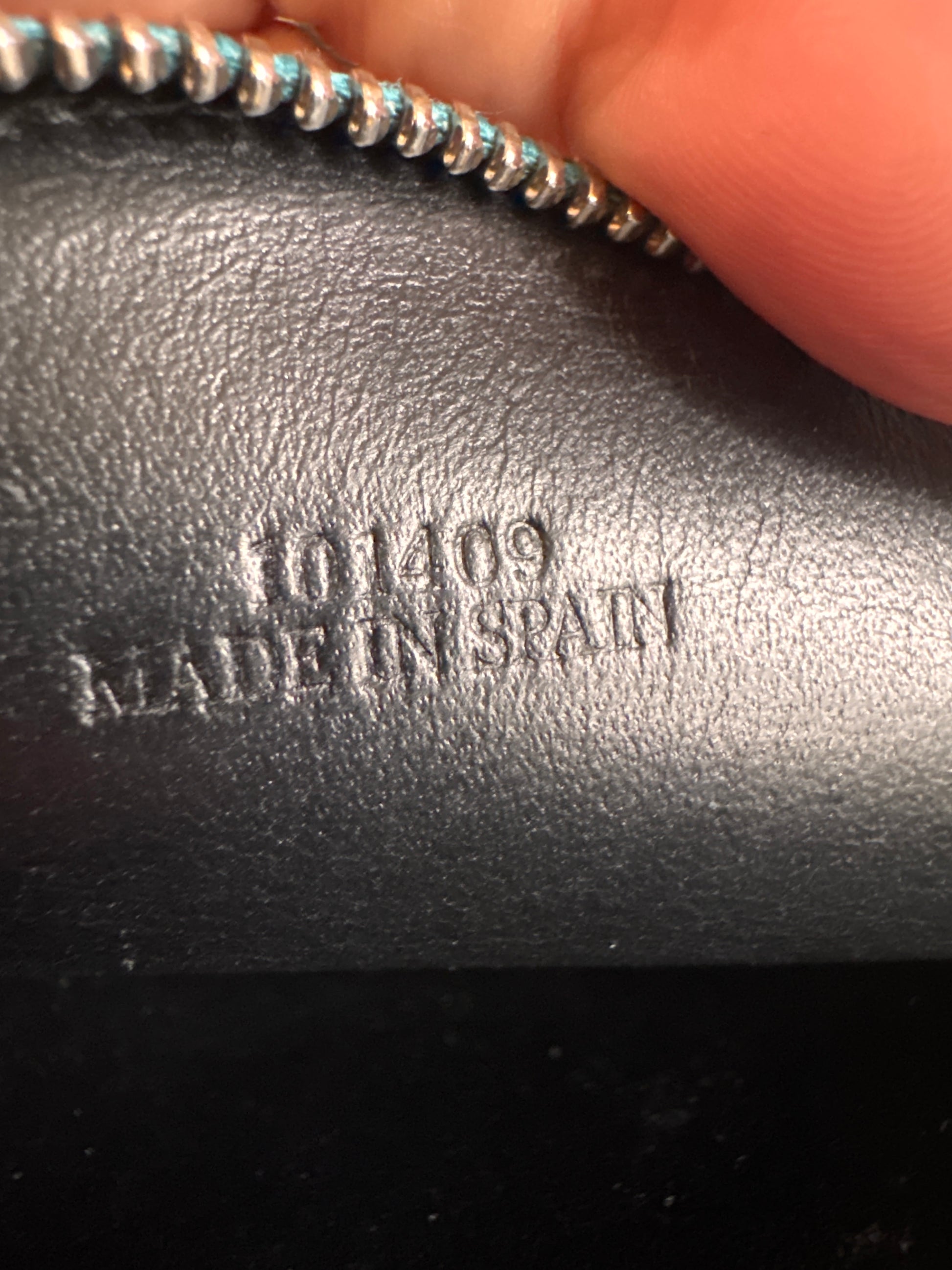 Crafted from beautiful teal leather and featuring a sleek black interior, the Loewe Leather Round Coin Purse is an elegant yet practical accessory. Despite some signs of use on the leather, it is still in excellent condition and the silver hardware adds a touch of sophistication. The stunning anagram on the front adds a unique touch to this versatile purse. No inclusions.