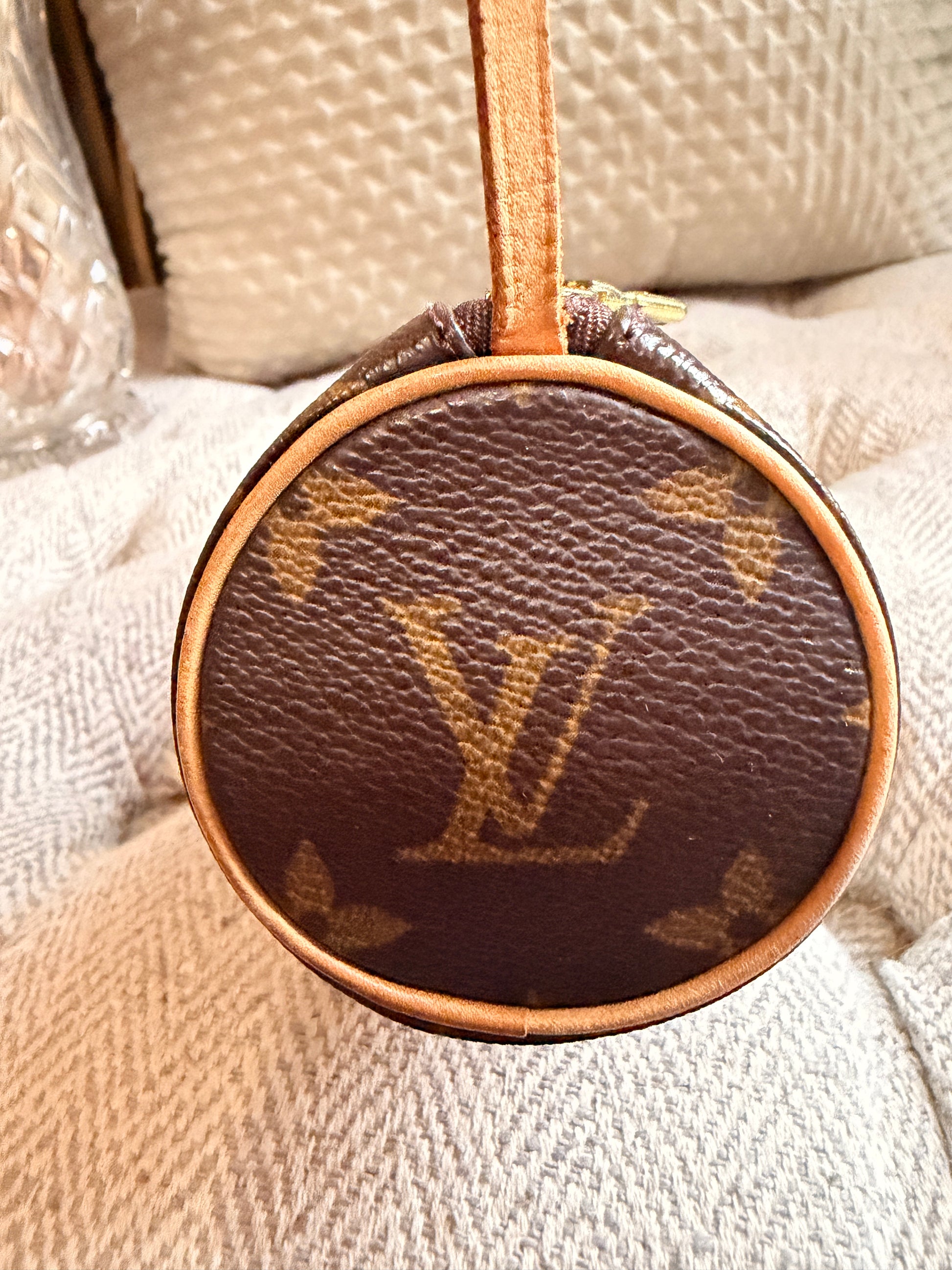 Meet the Louis Vuitton Mini Papillon—a pint-sized powerhouse that’s ready to tackle your essentials with panache! Cloaked in classic monogram canvas and vachetta leather, this little cutie has a luxurious terracotta interior that screams, "I’m fancy!" (without shouting). Sure, it may have some vintage character, but that just means it’s got stories to tell. Perfect for your cosmetics or quirky trinkets—this pouch is ready to roll!