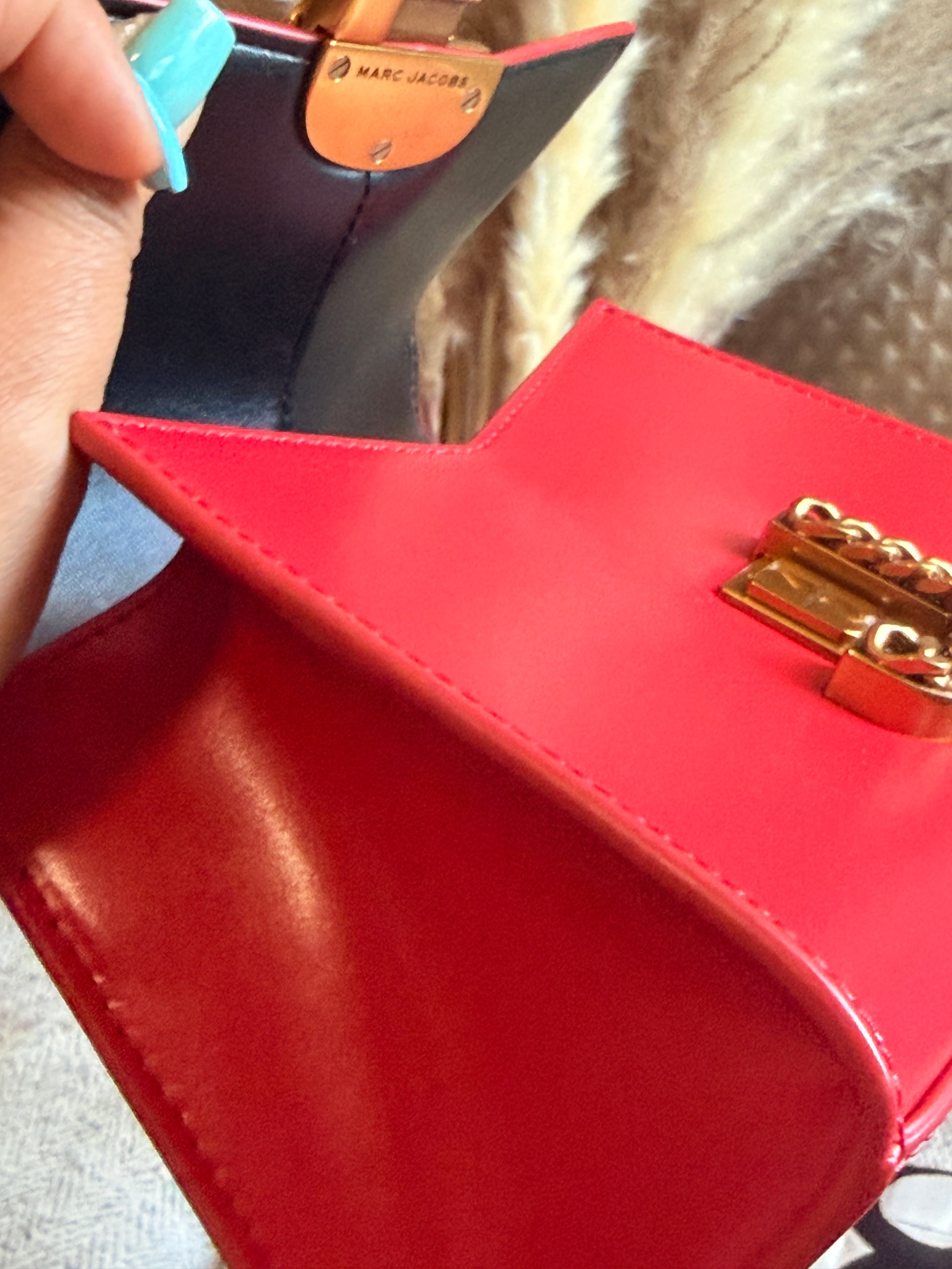 Meet the Marc Jacobs St. Marc Mini Top Handle—your new sidekick in fabulousness! This lipstick red leather beauty comes with a detachable crossbody strap (because hands are overrated), a sneaky card pocket for your secret stash, and a chic dustbag for when it's time to snooze. Measuring in at a petite 7" L x 6" H x 4", it's perfect for toting around your essentials while turning heads. Who knew being stylish could be this much fun?!
