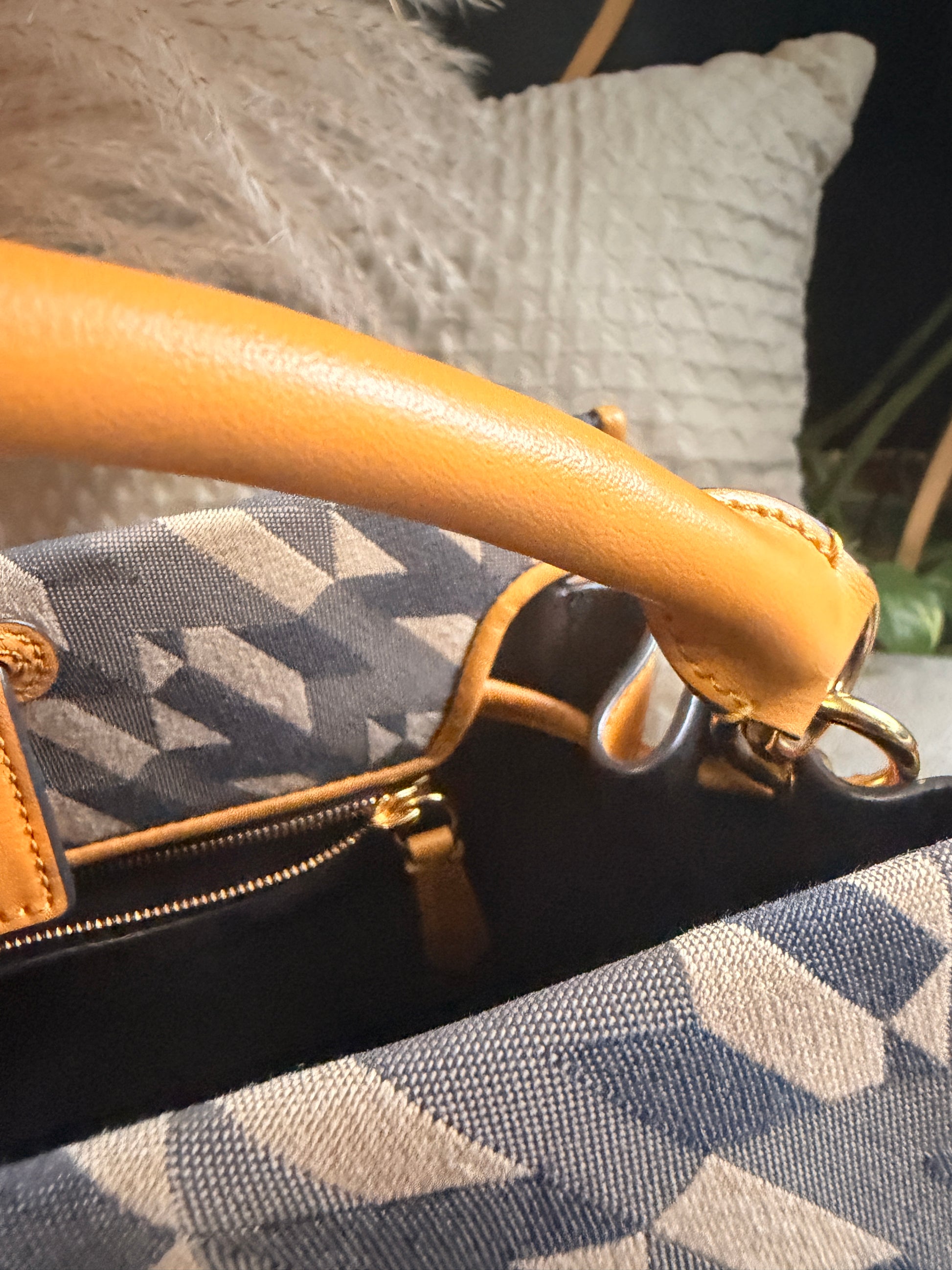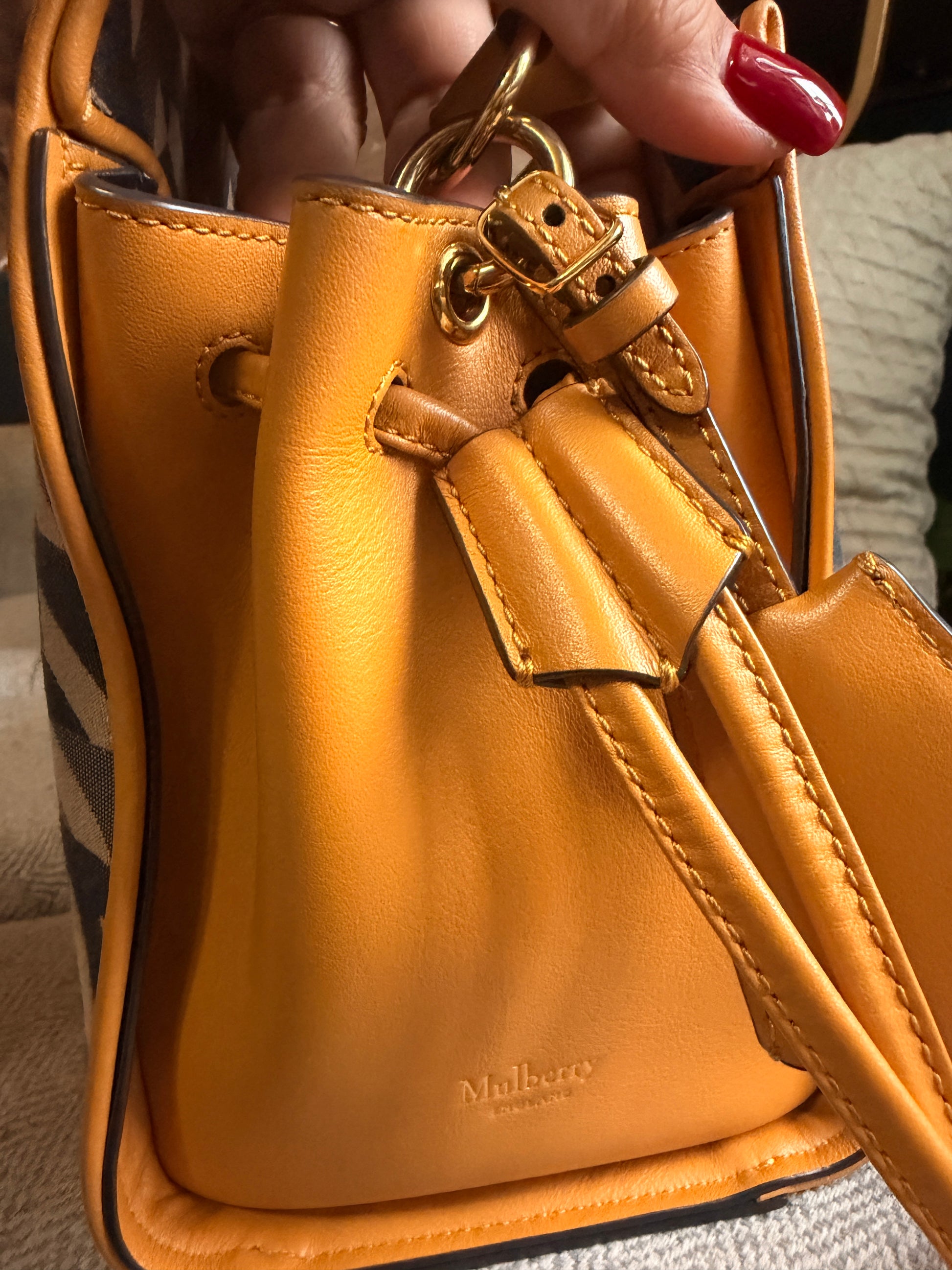 Meet the Mulberry Small Iris Tote Bag: the chic sidekick you never knew you needed! Made from ocean-reclaimed nylon and sustainable cotton, it’s as eco-friendly as a whale wearing sunglasses. With a waterproof finish and a plush suede interior, your goodies stay dry while you strut your stuff! Plus, that mustard yellow trim? Chef’s kiss! (Seriously, it’s like sunshine in bag form.) Perfect for carrying all your treasures—because who doesn’t want a stylish companion on your quests?