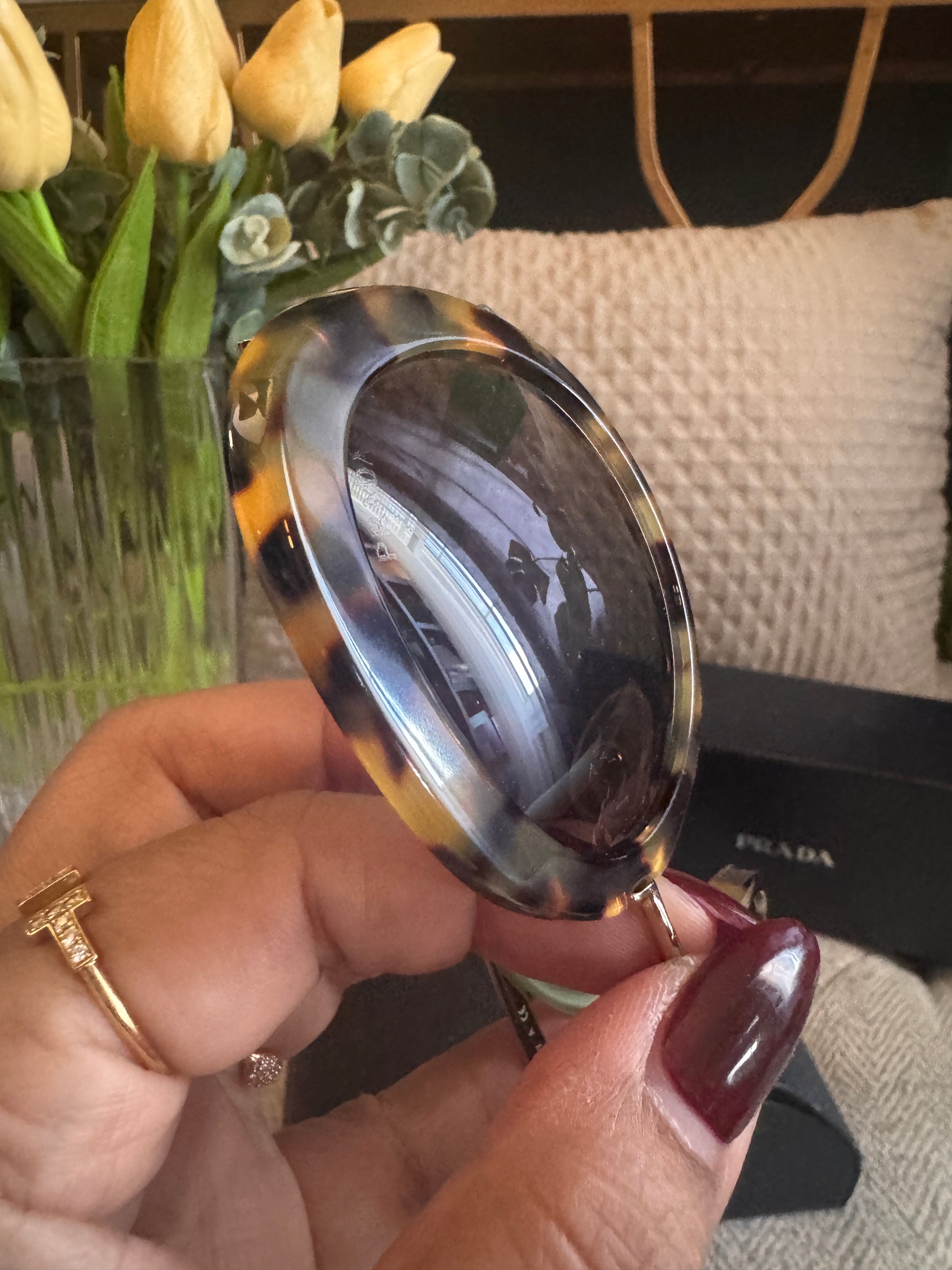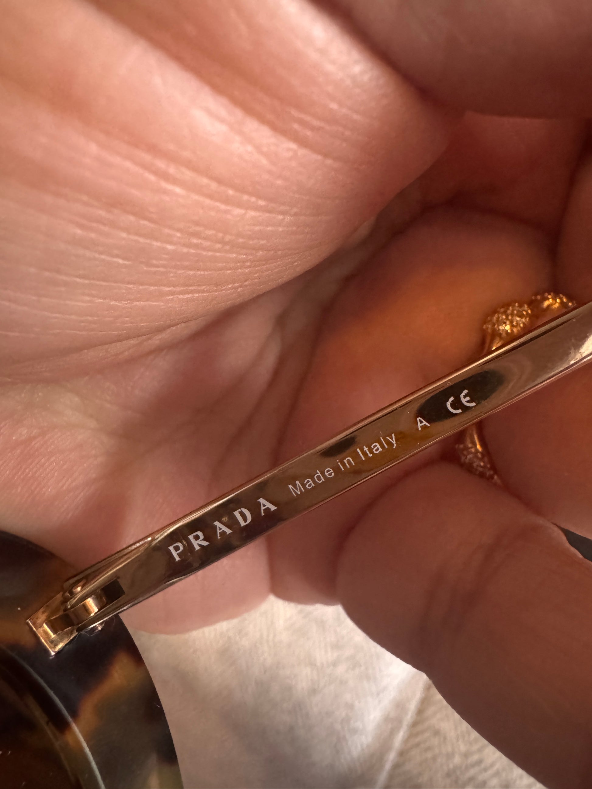 Elevate your style with Prada's Cinema Round sunglasses, featuring a chic leopard print frame and refreshing mint green accents. These acetate shades also come with a gold-tone hardware and a matching original case. Get ready to make a fashion statement with this irresistible pair!