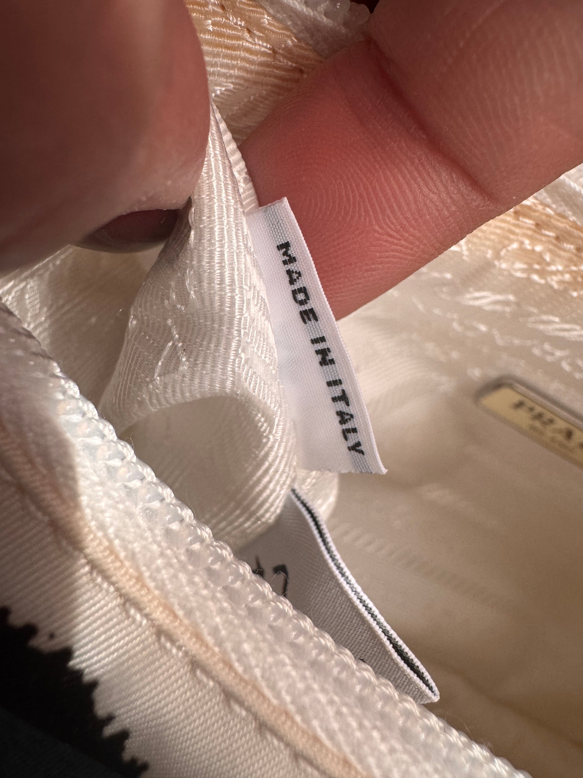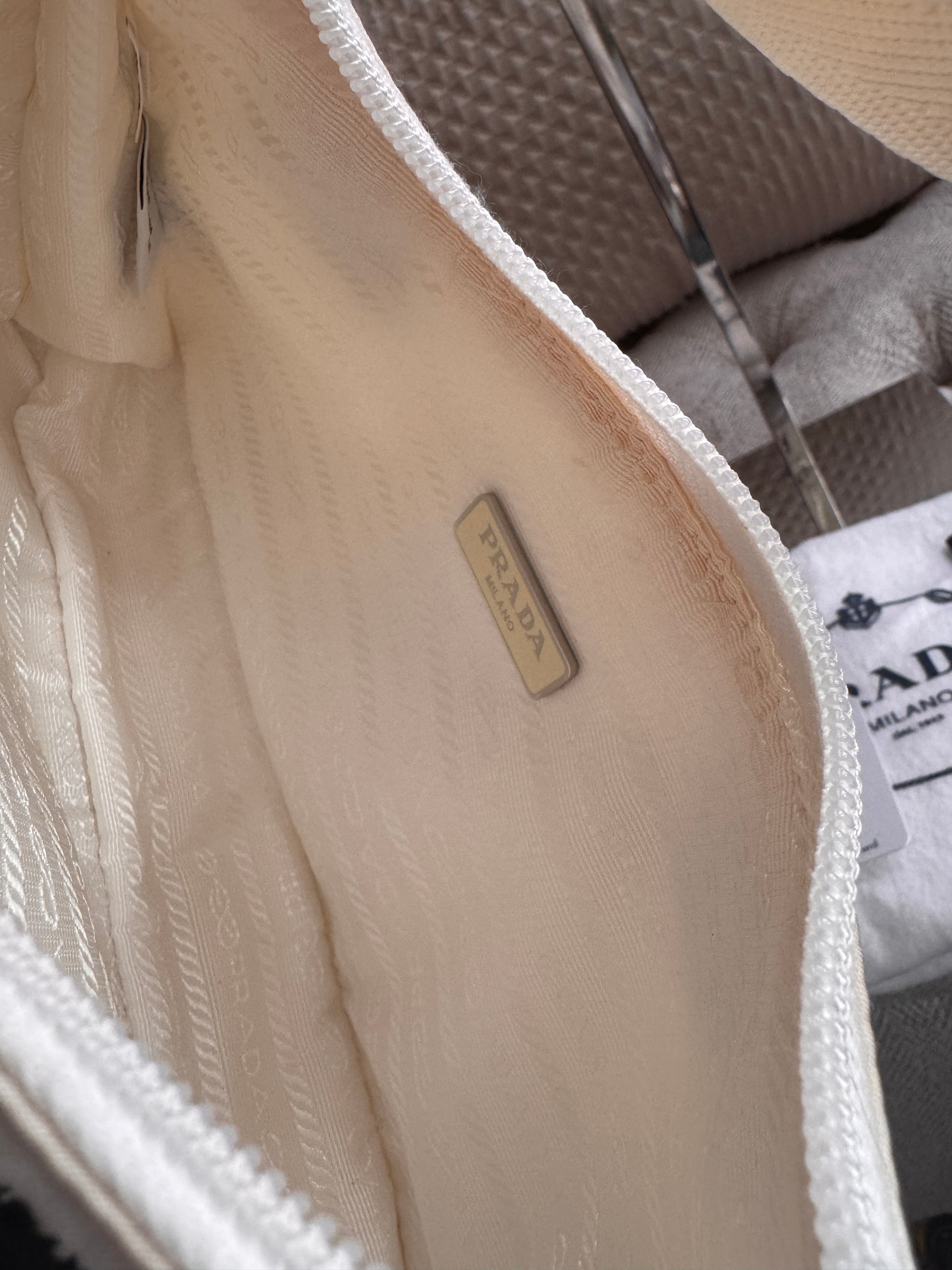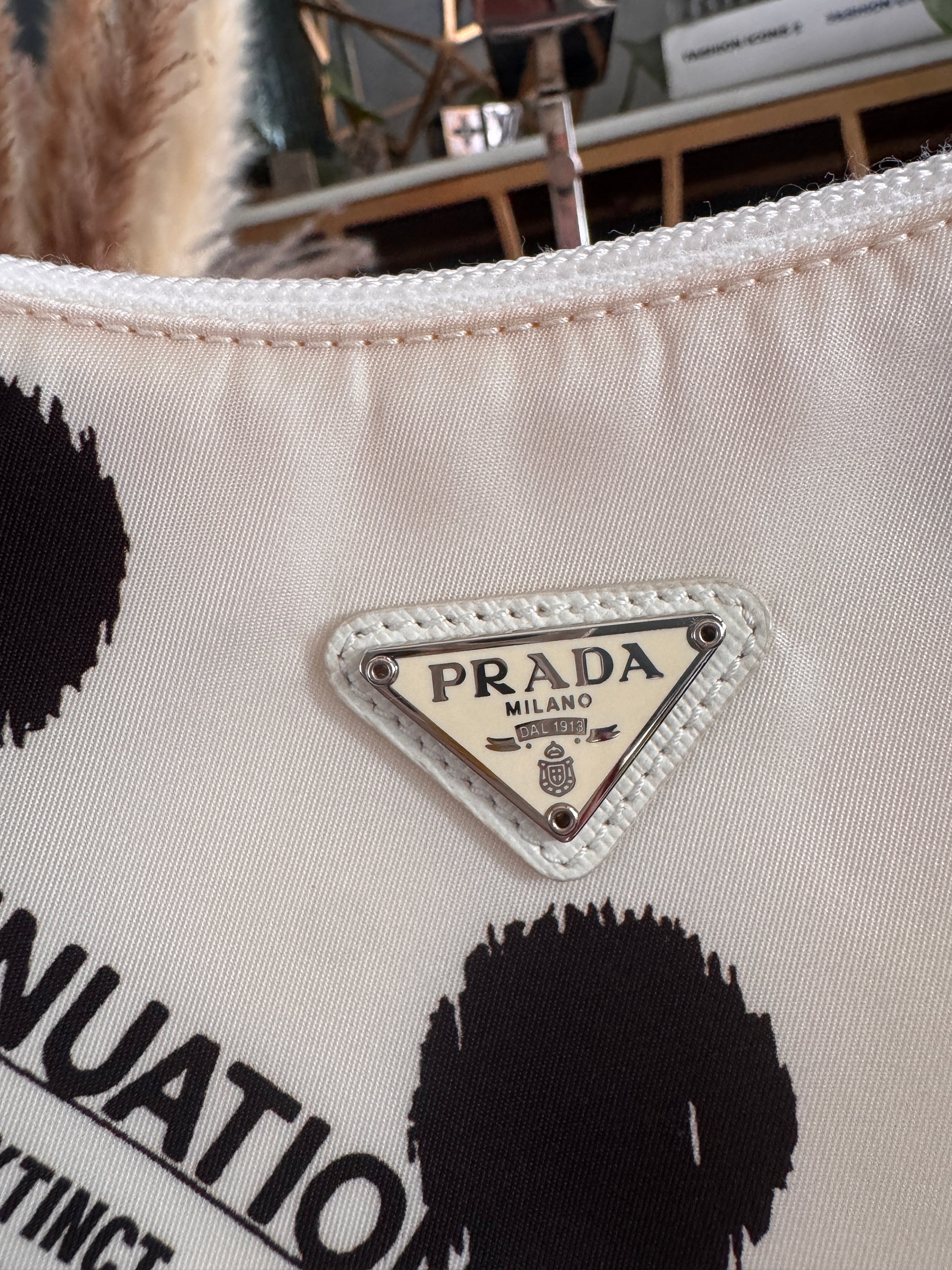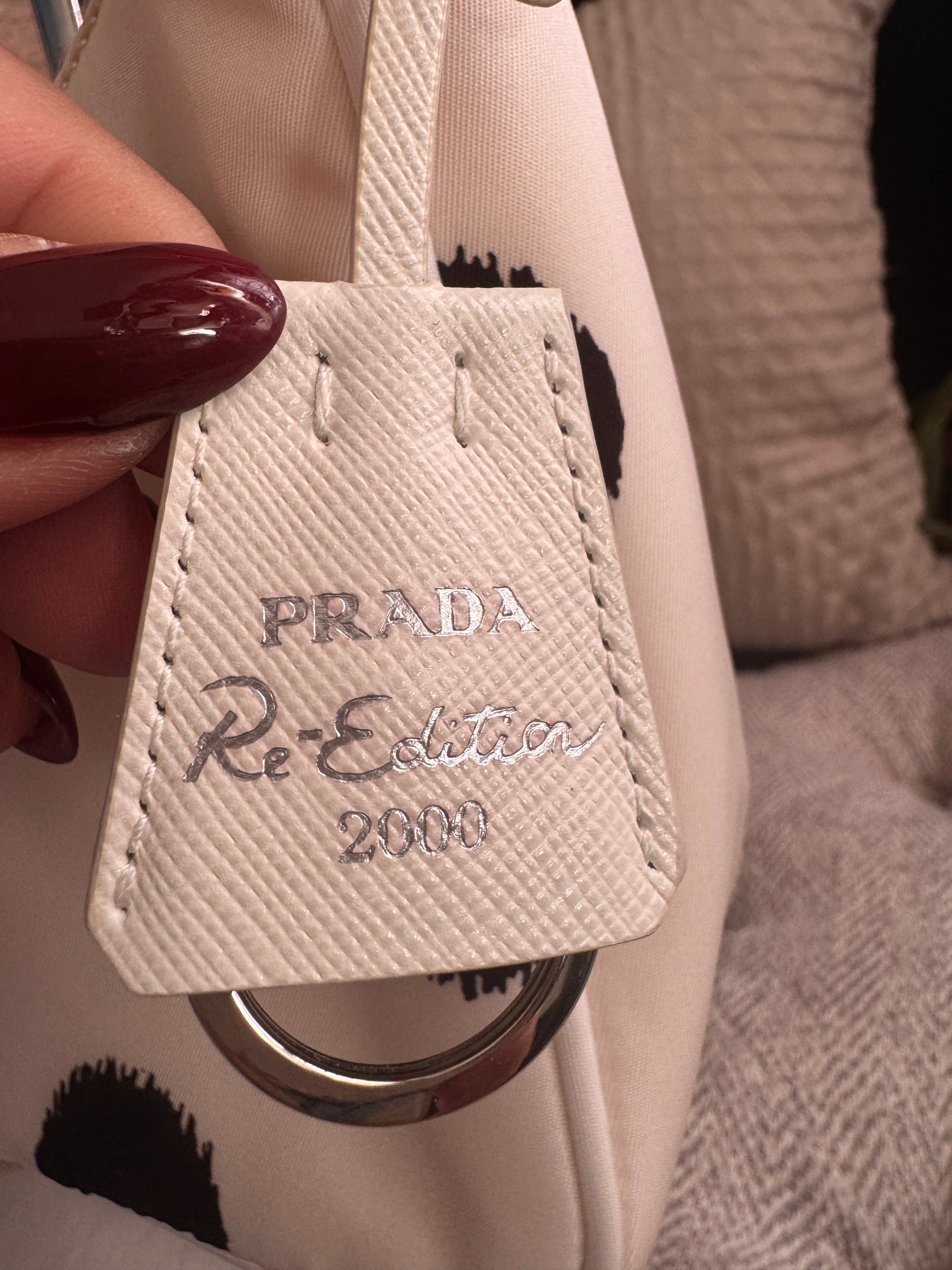 PRADA Tessuto Nylon Polka-Dot Mini Re-Edition 2000 Bag White Black