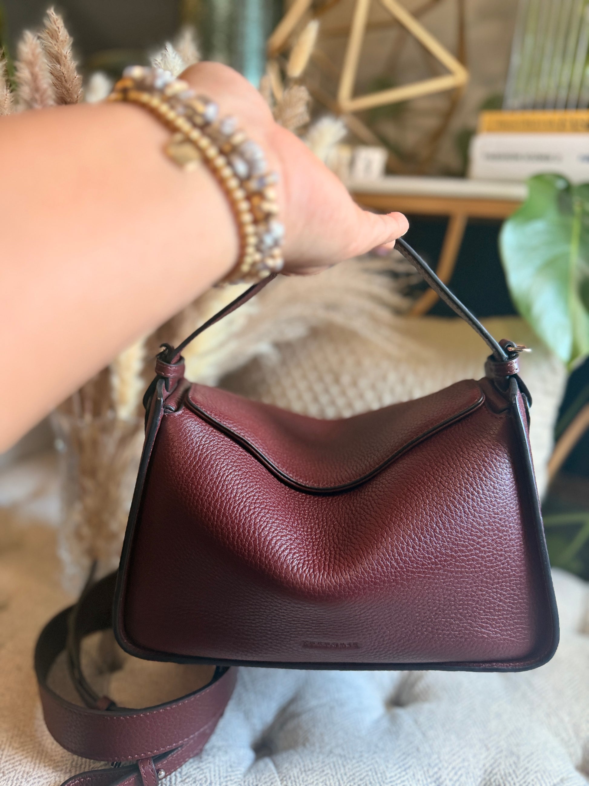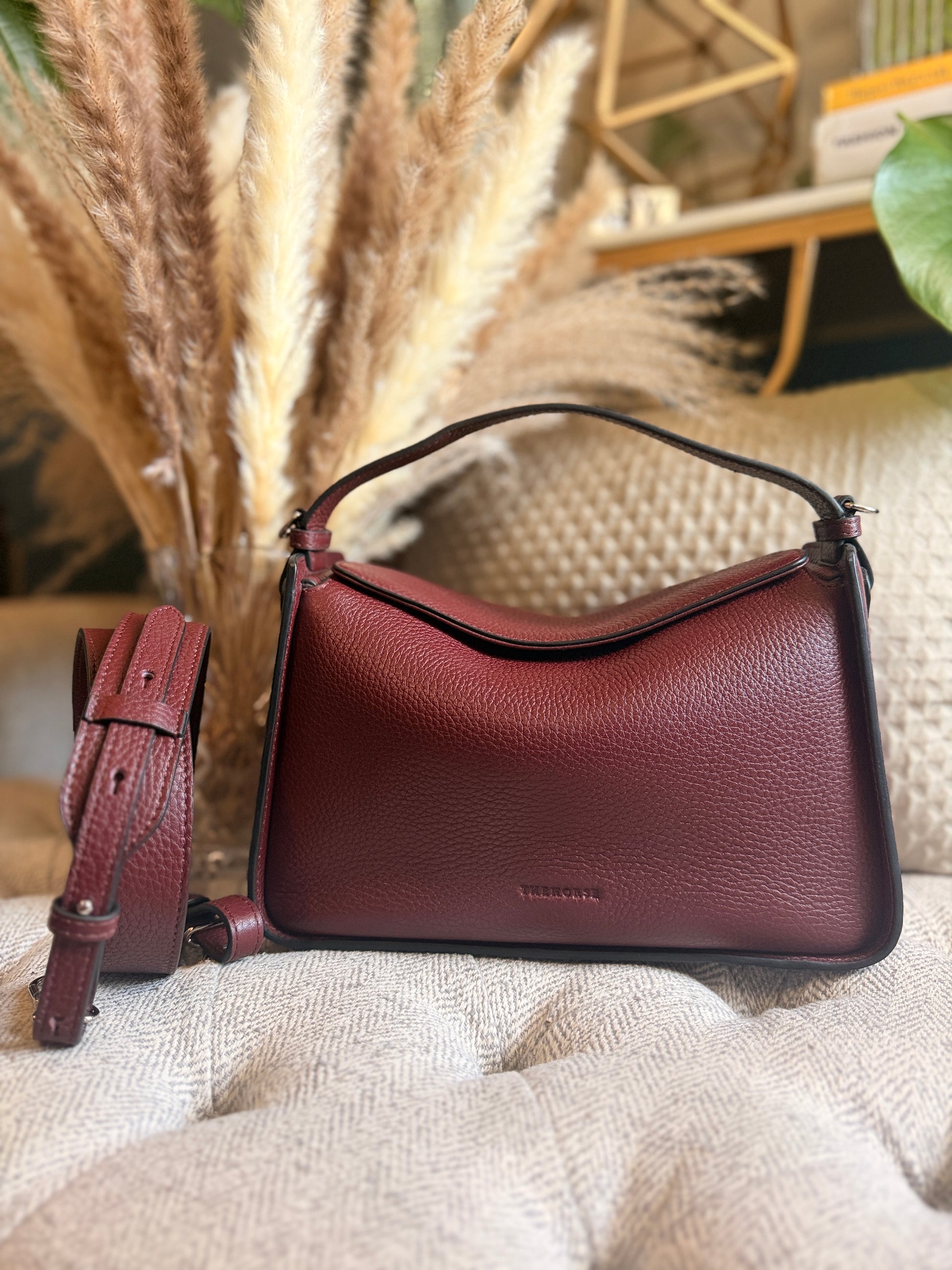 Meet The Horse Clementine in Burgundy—your new best friend for all things fabulous and slightly sassy! Worn only once for a quick jaunt (talk about a brief romance!), this beauty is in like-new condition. With its stunning hue, you'll be turning heads faster than you can say “fashionista!” Perfect for those who want to strut their stuff without breaking a sweat (or the bank). Snag it before it gallops away!