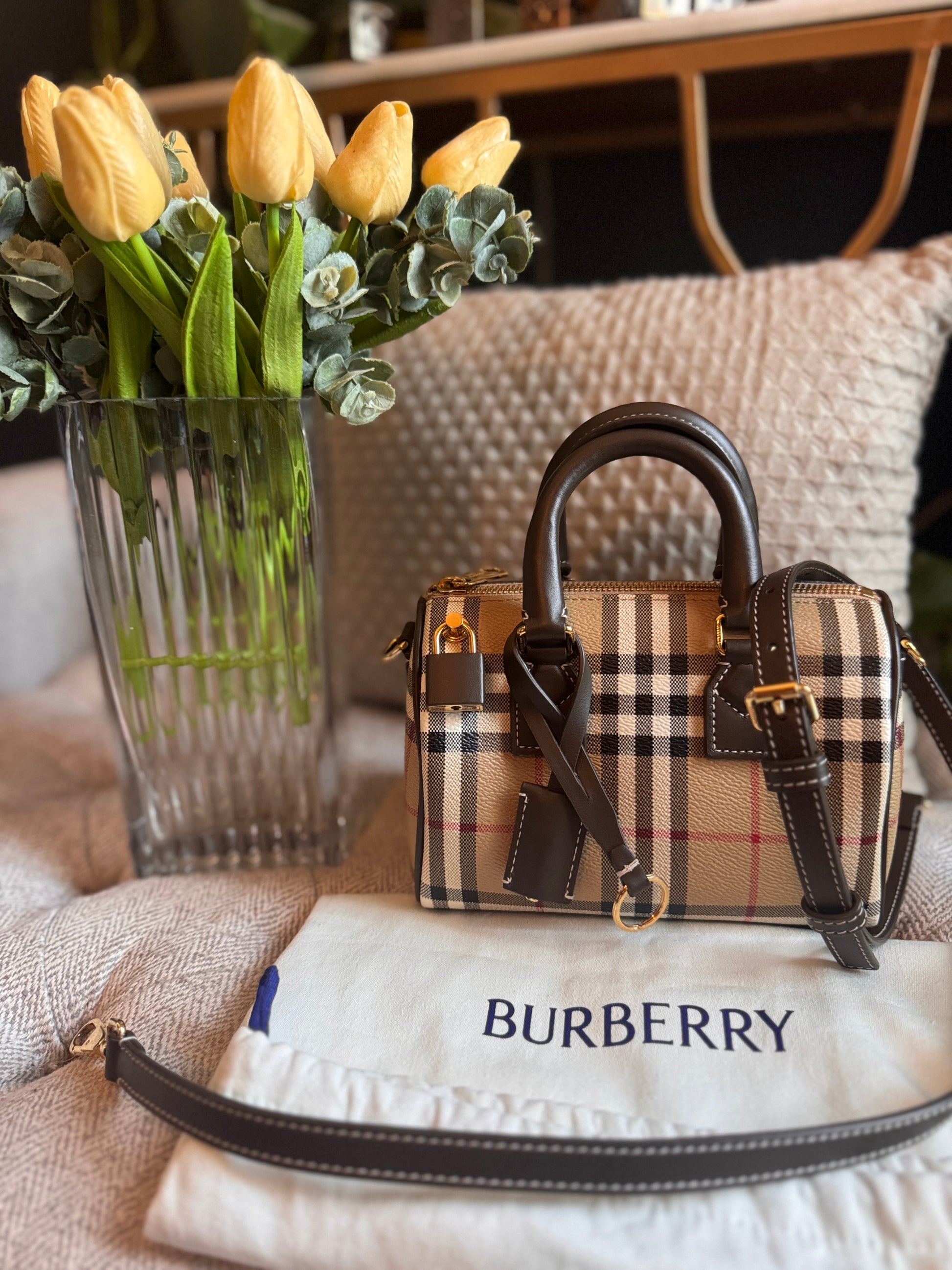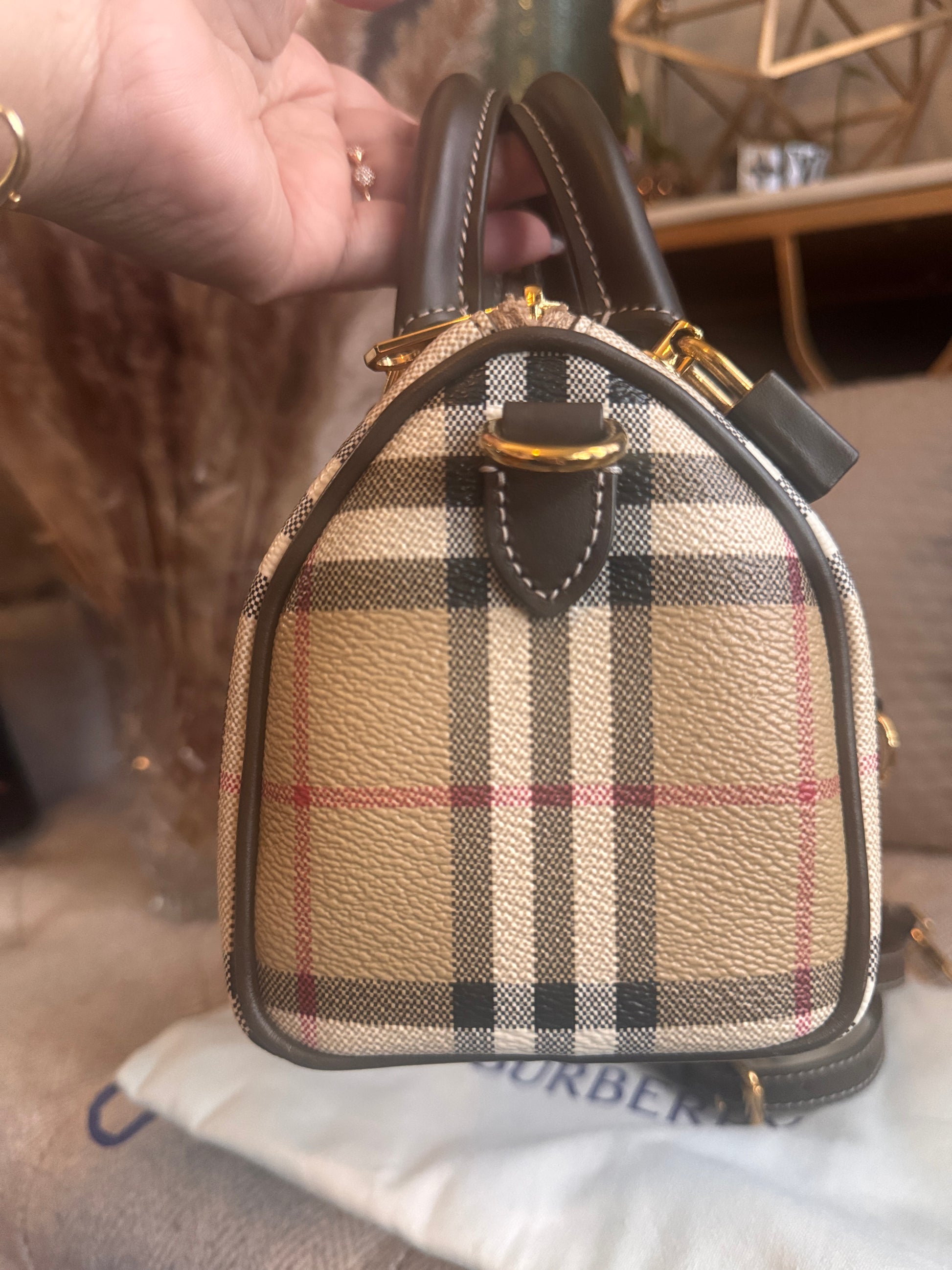 Burberry Mini Check Bowling Bag in Military